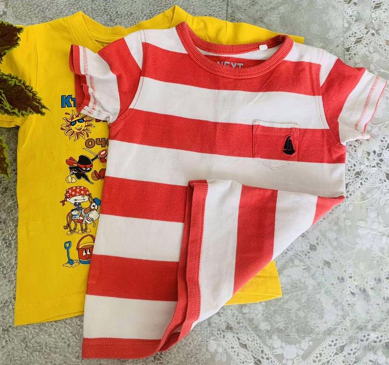 Футболки в идеальном состоянии. Тканина - уплотнена. NEXT - идет на 2-3 рочки. Cotton 100%. ■ футболка в NEXT 👇 длина: 37 см длина плеч: 24 см длина рукава: 8 см пол: 28 см. ● футболка Keya, Europe 👇 длина: 34 см длина плеч: 25 см длина рукава: 9 см пол: 26 см. Приятная ткань в футболок, 100% коттон. Идет на 1-2 рочки.