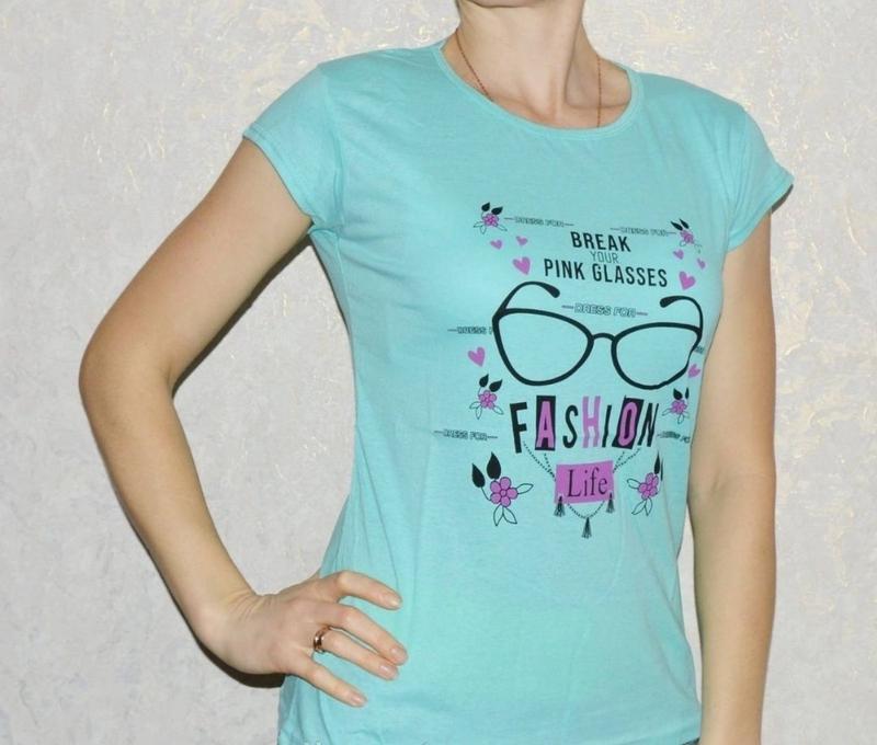 Футболка на девочке с узором спереди. Качество огонь. Футболка хорошо тянется. Кольори як на фото. Размеры 42,44,46,48. Склад 98% котон,2% еластан. Производитель Турция.
