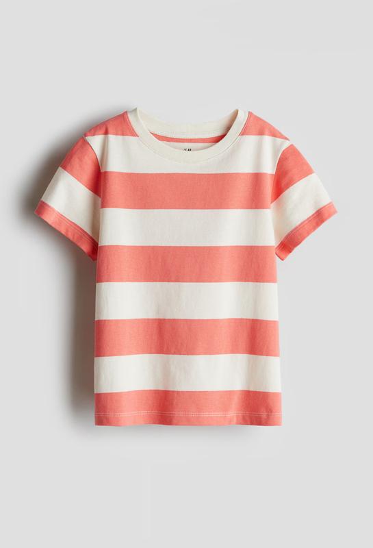 Футболка H&M з м'якого бавовняного трикотажу з круглим вирізом в смужку. Базова модель. Склад: 100% бавовна. Розміри: 98/104, 110/116, 122/128