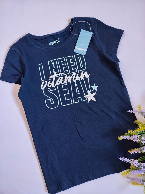 💙💛 Коттоновая футболка темно синего цвета с акцентной надписью от бренда 💞 Pepperts 🧷 По наборке на рост 134 - 140 см 📌 длина 51 см, полухват груди 37 см