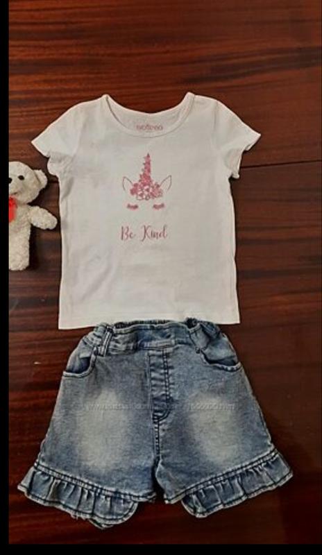 Комплект для девочки (шорты и футболочка) б/в, но в отличном состоянии. Состав: 100% хлопок. Рост 92-104см Ширина шортиков-30см Ширина футболки-28 см
