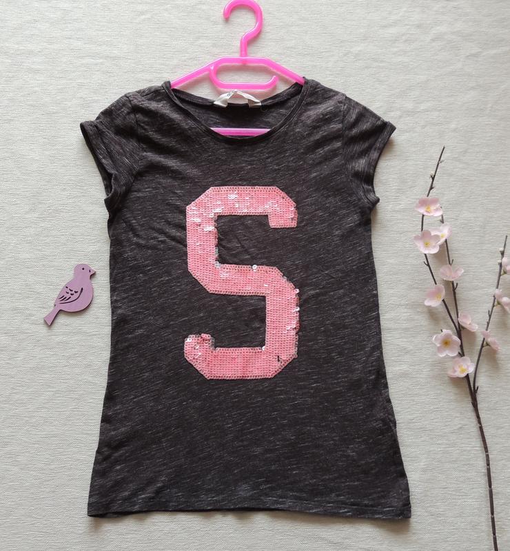 Серая футболочка h&m 10-12 лет принт цифра пять подмишки 36-44 качестве красивого хлопка