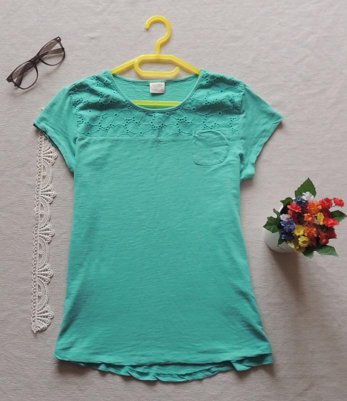 Красивая салатовая футболочка у горловины 13-14 лет бренд Zara состояние реально очень красиво не идеально но и не заношена под мышки 46 58 тянется красиво соответствует своему возрасту