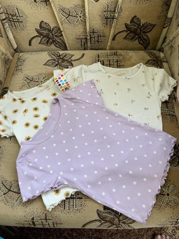 Футболочки в тонкий рубчик, на 6-7 лет, 122 размер, в красивом состоянии, последнее фото пятнышки на одной футболочки, 225 грн за все