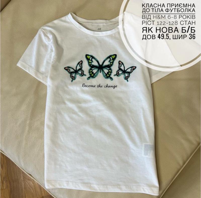 Футболка з метеликами 6-8 років ріст 122-128 беж на дівчинку як нова