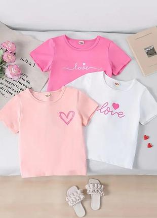 Футболки для девочки В наличии 3 шт Цвет как на фото Размер 4 года Рост 100 Длина футболки 40 см Длина рукава 12 см Объем груди ±67 см Тканина 95% поліестер, 5% еластан Ткань красиво тянется Цена 1 шт - 180 грн