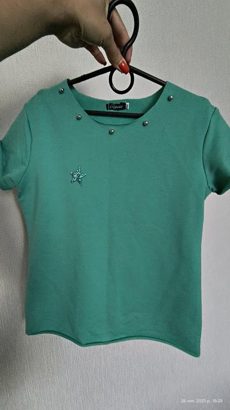 Футболка для девочки в идеальном состоянии. Длина - 51 см Полуобхват в грудях - 42 см.