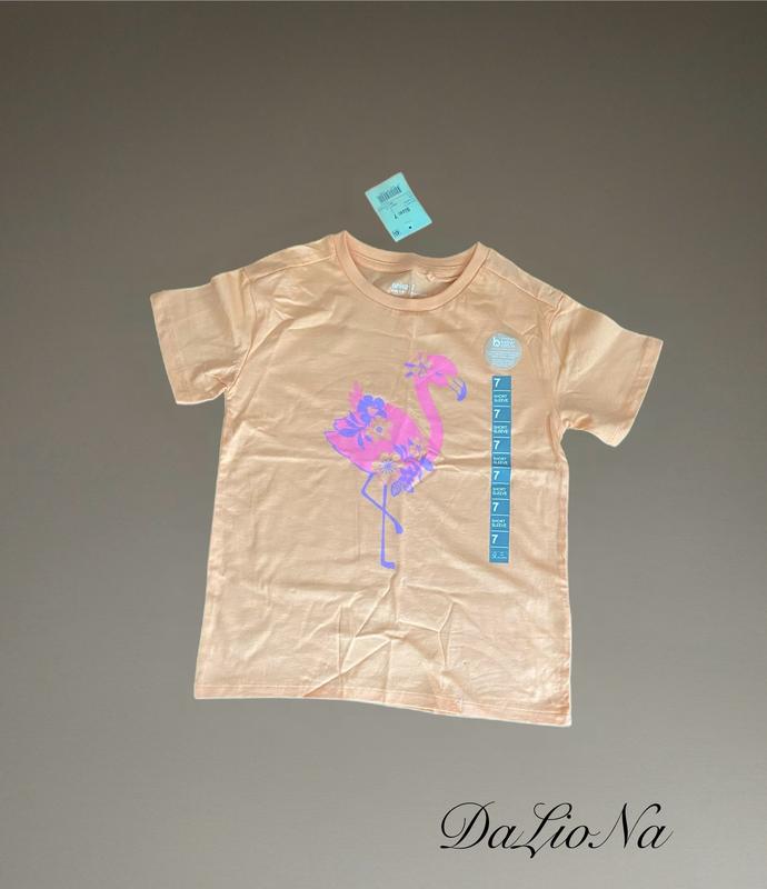 Дитяча футболка для дівчинки Колір: помаранчевий. Розмір: 7 років. Довжина виробу від плеча: 47 см Довжина грудної клітки: 35 см Тканина: бавовна