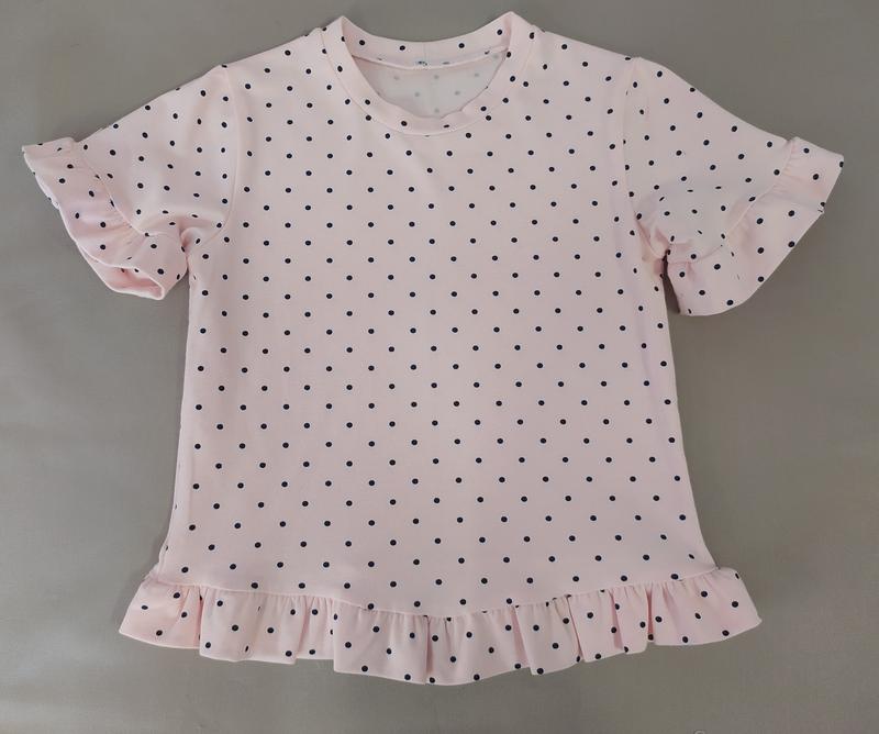 Футболка для девочек.Натуральная трикотажная ткань со стрейчем 95котон 5 эластан Низ и рукава с рюшами