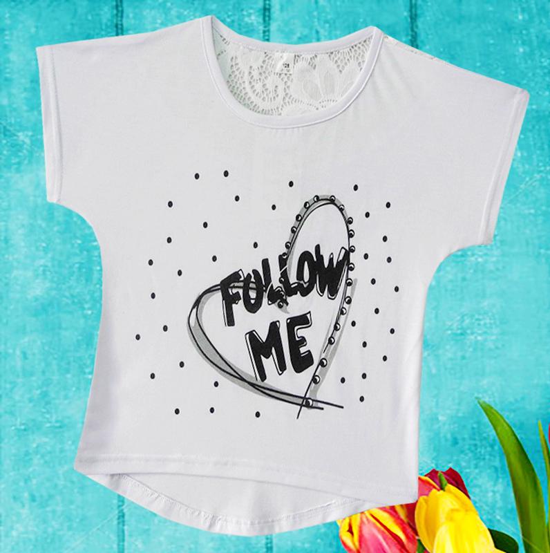 Футболка для девочки, стрейч-кулир с гипюром 128р длина по спине 43см, ширина 35см Доставка: Нова пошта, Meest ,Укрпошта, Доставка за Ваш счет