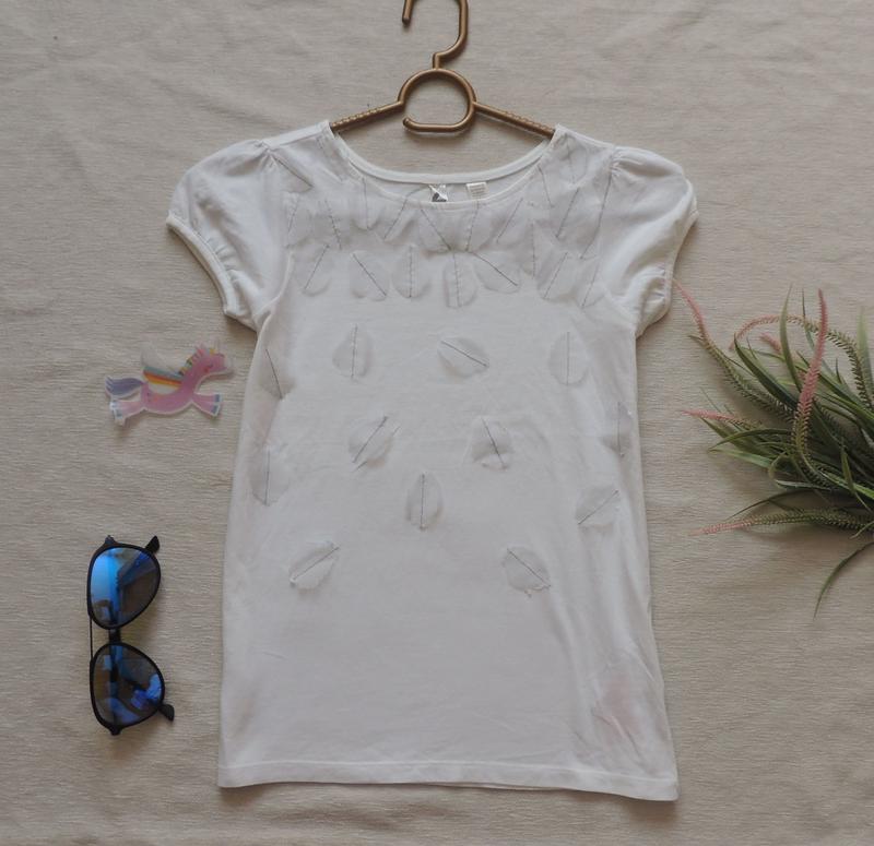 Футболочка с пришитыми шифоновыми листочками окайди 10 лет в очень хорошем состоянии реально прикольнa, под мышкой 38-45 хлопок мин заказа от 80 грн 📣