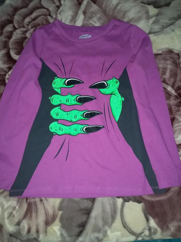 футболка OshKosh, 100%котон, 12-13роков, практически новая, плечи 31см, полуобъем груди и талии 38см, бедер 40см. длина 51см, рукав 50см. основание малиново- фиолетовая, вставки черные.9