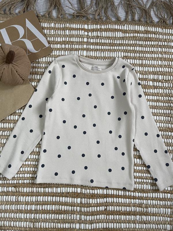 Стан ідеальний Довжина 35 см, ширина під руками 26 см, рукав від горловини 40 см Колір більше кремовий в чорний горошок