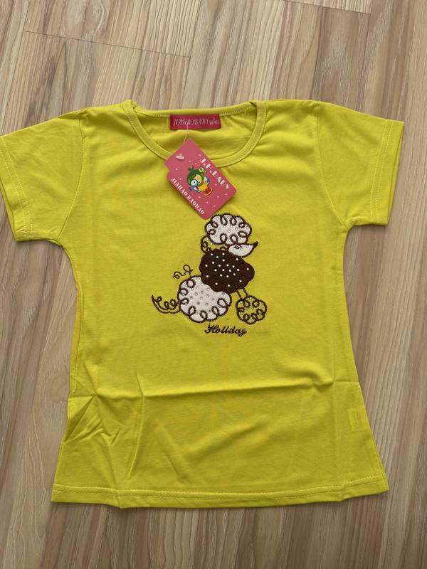 Жовта дитяча футболка з аплікацією пуделя та написом «holiday»