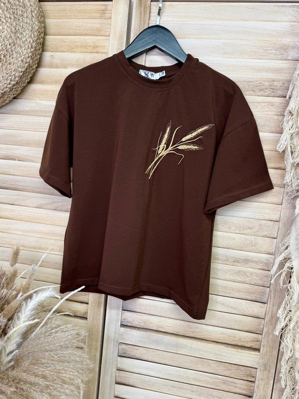 Футболка оверсайз Колоски Тканина стрейч кулір Золота вишивка Колір чорний Супер якість зріст/довж./пог похибка+-2см 146/53/43 152/55/45 158/57/47 164/59/49