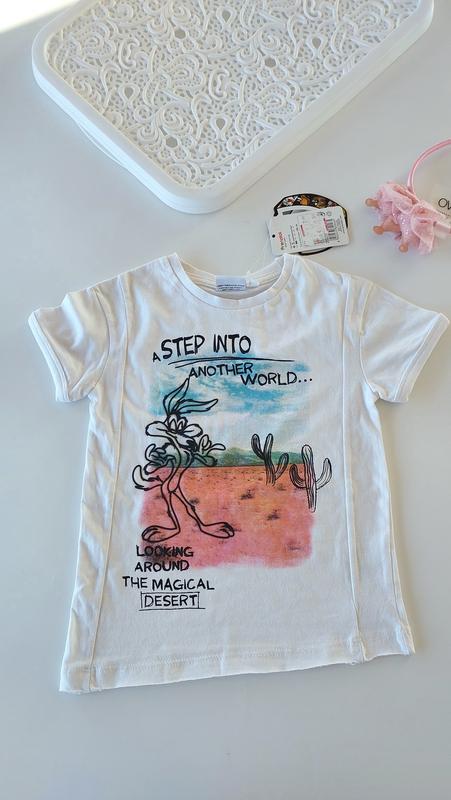 Футболка для девочки Loovey tunes 🔹️Приятная на ощупь, 🔹️низ косый с необрубленными краями 🔹️прорезиненный "лис" 🧶 состав ткани : 100 % котон ✅️Рост 108 см Возраст 4 - 5 лет 🪈 Замеры: Длина - 43 / 46 см Ширина под пашками - 32 см Ширина по плечах - 26,5 см 🏷 Цена 135 грн ❗️❗️❗️ минимальная сумма заказа - 250 грн