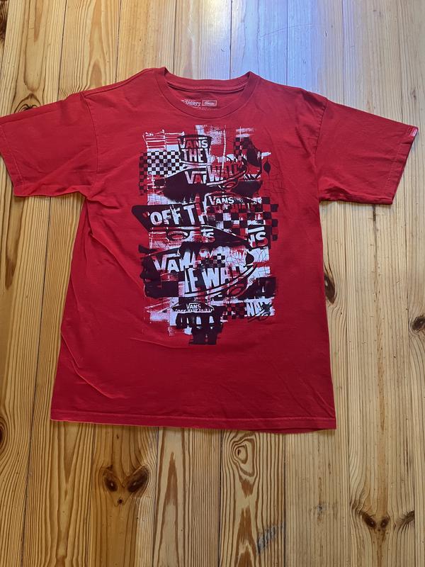 Футболка Vans, червона, оригінал!!! Продам стильну червону футболку Vans з фірмовим принтом Off The Wall. Стан хороший, без дірок і плям, принт цілий, не злущений. За деталями звертайтеся в особисті повідомлення