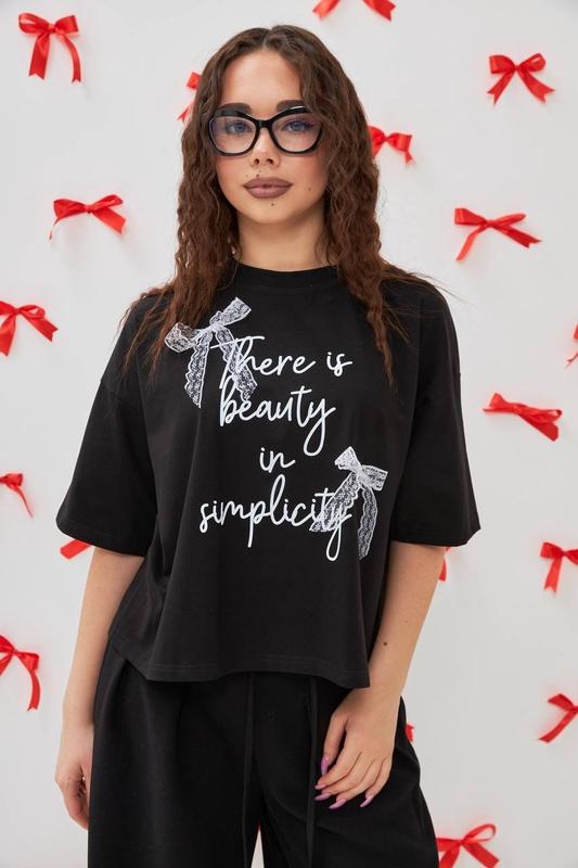 Футболка овер с кружевными бантиками вкорочена модель Ткань-кулир Очень хорошего качества! рост/длин.футб/пог похибка+-2см 140-146/42/54 146-152/44/55 152-158/47/56 158-164/50/57 164-170/54/58