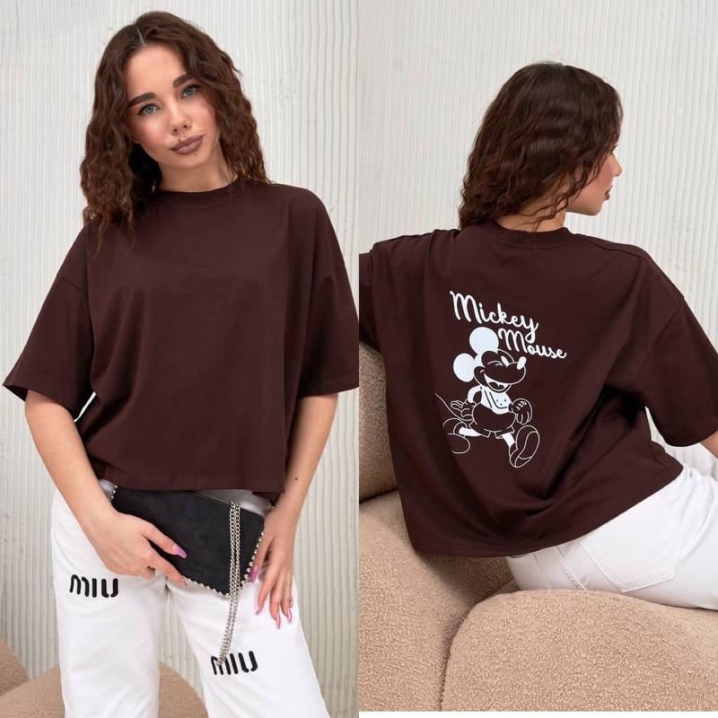 Футболка овер с рисунком сзади вкорочена модель Ткань-кулир Очень хорошего качества! рост/длин.футб/пог похибка+-2см 140-146/42/54 146-152/44/55 152-158/47/56 158-164/50/57 164-170/54/58