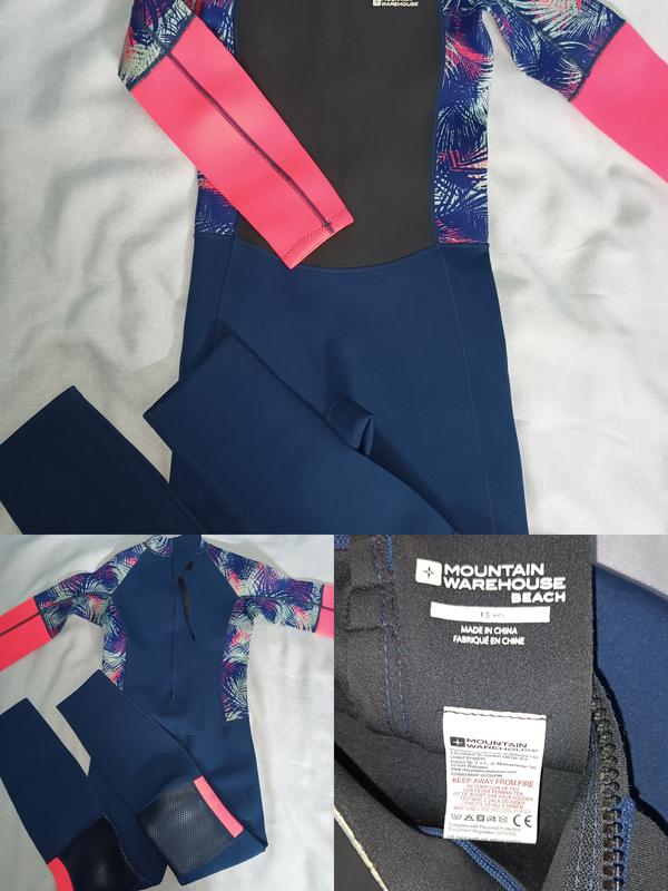 Гідрокостюм довгий Гідрокостюм дитячий— для занять спортом і активного відпочинку на воді. Технічні характеристики Найменування: Гідрокостюм Mountain Warehouse Товщина неопрену — 2.55 мм Premium-клас неопрену. Водовідштовхувальні панелі на грудях і спині. Плоскі шви. Безшовні пахви. Доступні кольори: рожево-синій Заміри дам Розрахований на високий зріст. Рекомендації по догляду: стійкий до впливу морської води. Після тривалого зберігання прополоскати в чистій воді. Не сушити на сонці. Рекомендації щодо зберігання: зберігати на плічках в сухому, захищеному від сонячних променів місці. Особливості Гідрокостюм Mountain має наступні особливості: Воріт під горло — Не сковує рухи голови і шиї, обмежує проникнення води всередину комбінезона. Неопрен — В одязі з неопрену вода блокується між неопреном та шкірою і нагрівається за рахунок температури тіла.