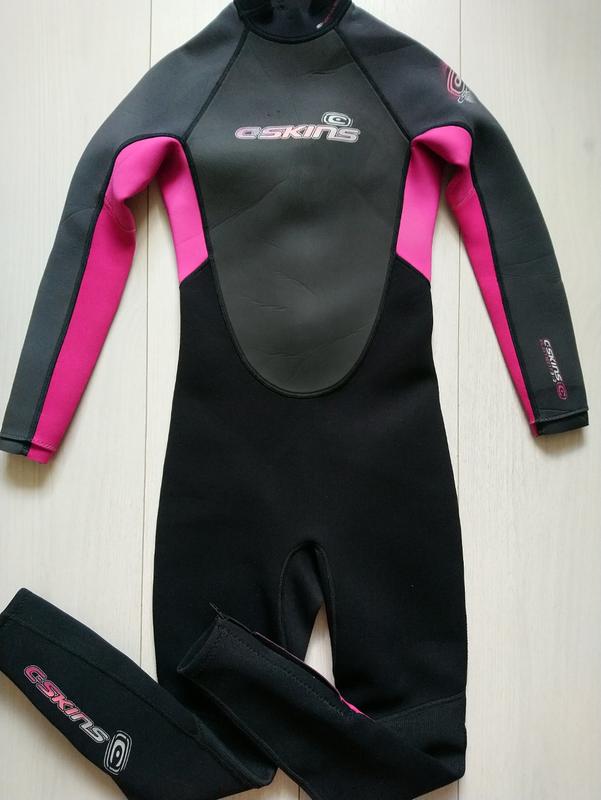 В очень хорошем состоянии. Размер XL на возраст 12 лет. Из дефектов сзади на бедрах ушли стрелочки на верхнем слое. Товщина неопрену 2 мм. От плеча до низа 128 см, до паха 71 см. От горловины до паха 67 см. Под руками 37 см. Полуобъем пояса 31 см, бедер 37 см. Рукав от шеи 60 см