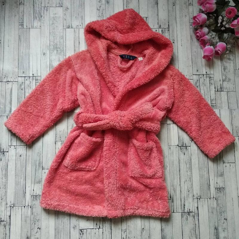 Махровый халат с капюшоном на девочку kids в идеальном состоянии Размер по бирке на рост 116 см,реально на 3-4 года,рост 98-104 см Замеры: длина 60 см рукав 34 см плечи 41 см ПОГ 45 см ПОТ 45 см два кармана спереди цвет розовый, коралловый состав махра
