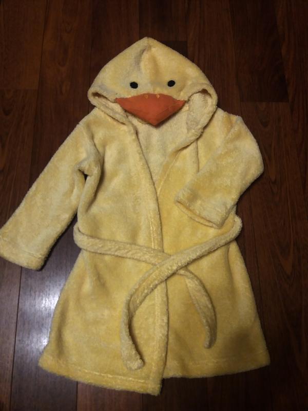 тепленький милий махровий халат.в ідеальноиу стані.розмір не вказано,але носили на 92