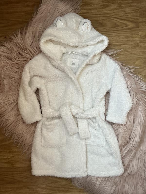 Халат для девочки 3-4 лет. Невероятно милый, мягкий, с ушками на капюшоне, которые украшены пайетками. Присущая люриксовая нить, поэтому красиво блистает. Имеет карманы. 🌸В идеальном состоянии, без нюансов. 📦Возможна безопасная доставка📦