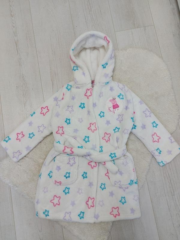 Халат на дівчинку, стан ідеальний! Без плям, не закошлачений, м'якенький та дуже гарний. Га бірці 3-4 роки, ми носили майже до 6!