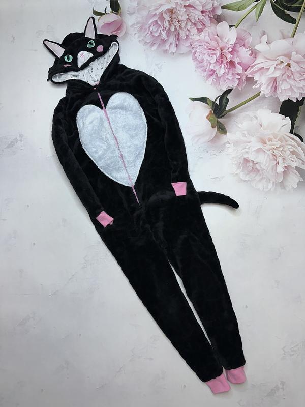 Махровый комбинезон кигуруми «Чёрный кот» Сзади есть съемный хвостик Состояние супер 🏷️TU 9-10 лет/140 Длина 119(69). Шаг 55. ПОГ 40. Рукав от шеи 57