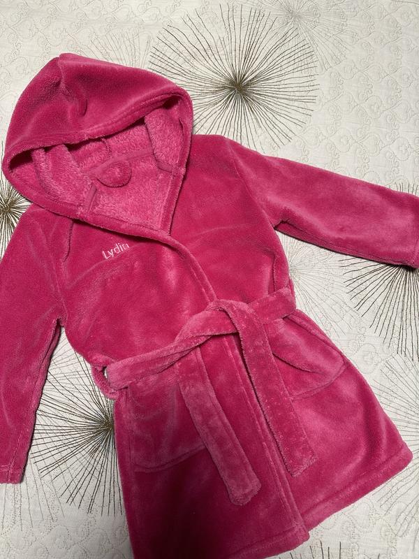 Красивый, теплый халат малинового цвета. Состояние нового. Размер 4-5, можно раньше подворачивать рукавчик.