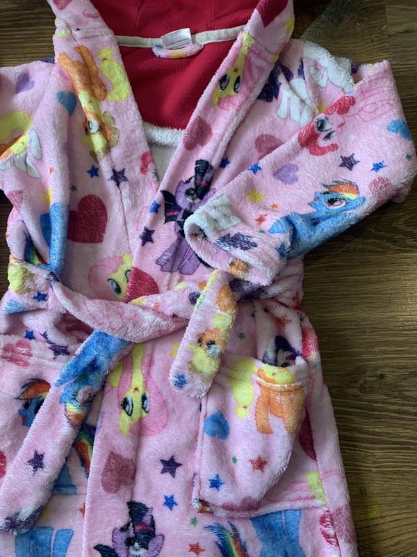 Крутезный банный халатик для маленькой ценительницы My Little Pony. На бирке указано 3-4 года, мы носили до пятки)