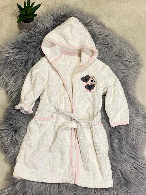 Махровый халатик для девочки 2-3 года рост до 98 см с капюшоном и поясом