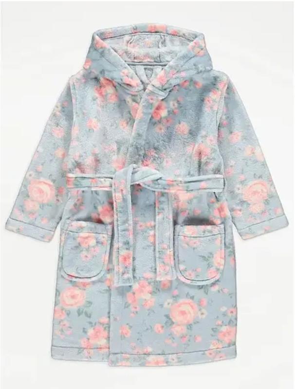 Халат для девочки. Цвет – мятный. Ткань - плюшевый флис (100% полиэстер). Описание продукта • С капюшоном • цветочный принт • Длинный рукав • Пояс • 2 боковых накладных кармана Качество отличное. Очень мягкий и приятный на ощупь. Производитель – фирма George, Англия. В наличии размер на рост 110/116см