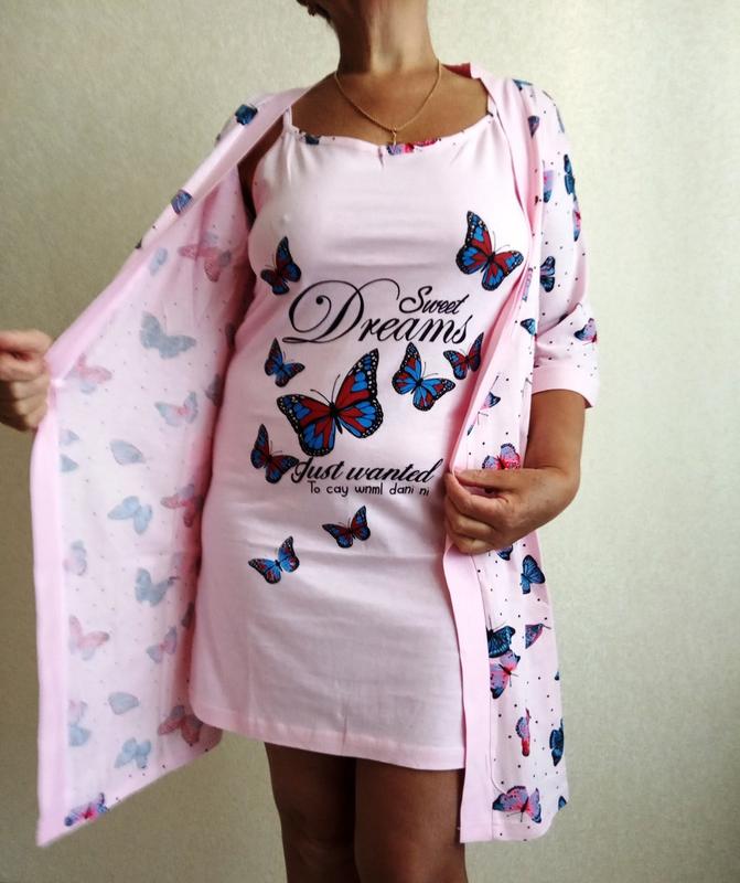 Сорочка ночная на тонких бретелях и халат для девочек подростков 14-18 лет