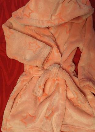 Халат флисовый для девочки. Теплый, мягкий. нежно персиковый цвет.