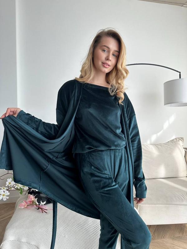 Домашний комплект 4 в 1 🌺 Халат-кимоно, футболка, шорты и штанишки. Встречайте нашу новинку которая станет самой любимой и удобной вещью в Вашем гардеробе 😍 Комплект выполнен из натуральной ткани, которая очень мягкая и приятная на ощупь, эта ткань совсем не капризна в уходе, не надо выбирать специальный режимы стирки или сушки, она износостойкая поэтому прослужит очень долго 👌 Благодаря универсальности комплект можно носить круглый год комбинируя между собой, таким образом Вы платите меньше, получите больше 😉 Цветная гамма подобрана идеально для того, чтобы вписаться в любой интерьер и чтобы каждая из Вас нашла тот цвет, который ей полюбиться 🥰 Широкая размерная сетка позволит радовать как маленьких и взрослых принцесс 🫶🏽 ▪️мод 04; ▪️ткань: королевский велюр плюш на хлопковой основе ▪️кольори: смагард, капучино, лаванда, електрик, слива, оливка ▪️размеры/цена: 104-110; 116-122; 128-134 - 1050 гривен 140-146; 152-158 - 1100 гривень 42-44; 46-48; 50-54 - 1150 гривен