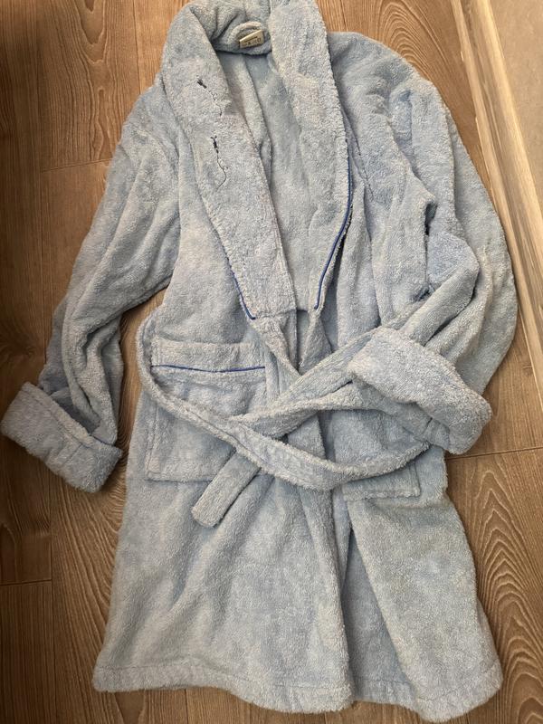Классный теплый махровый халат можно для мальчика или девочки Длина 90 Рукав спущен 55 и подворот Есть дефект пару пятен