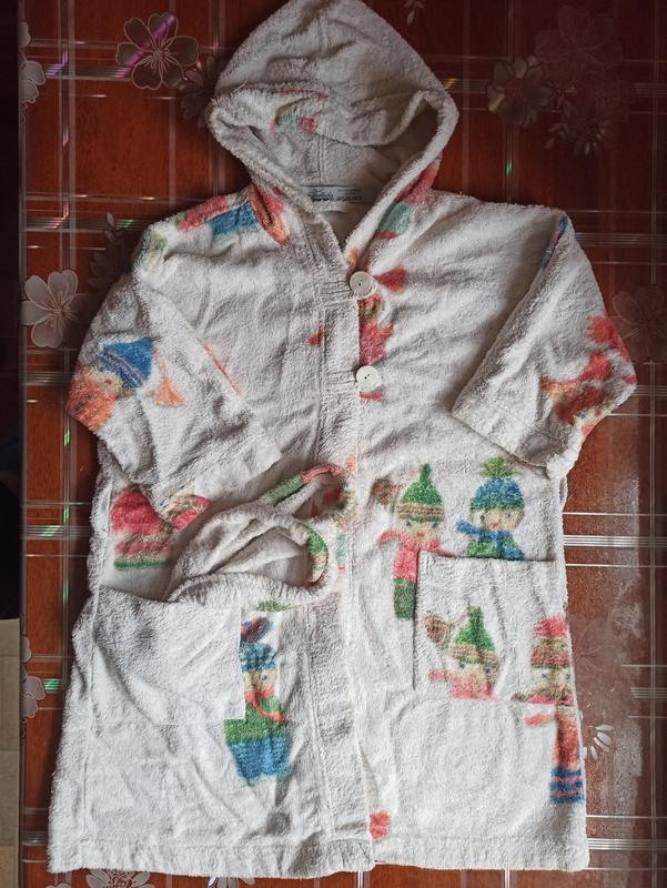 Шикарный швейцарский махровый халат. Бренду более 200 лет. Качество супер. Унисекс ( у меня носила дочь, вполне подойдёт и для мальчика). Пояс в комплекте. Два кармана. Использовали в бассейне.