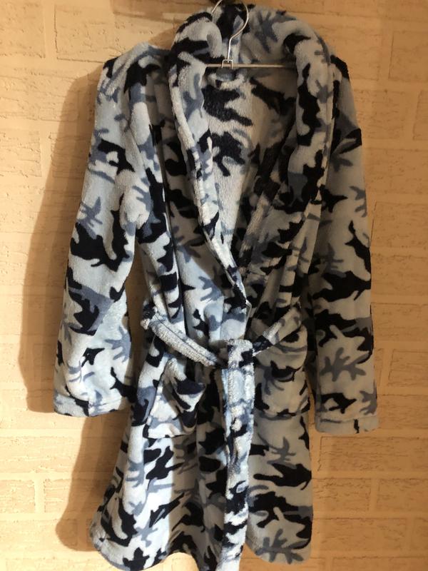Халат махровий на хлопчика 9-12 років. Має кишені. Поясок ззаду пришитий.