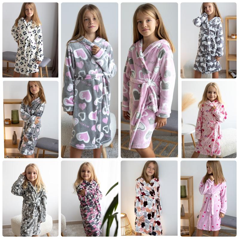 Теплый халат махровый для девочек, плюшевый банный халат с поясом
