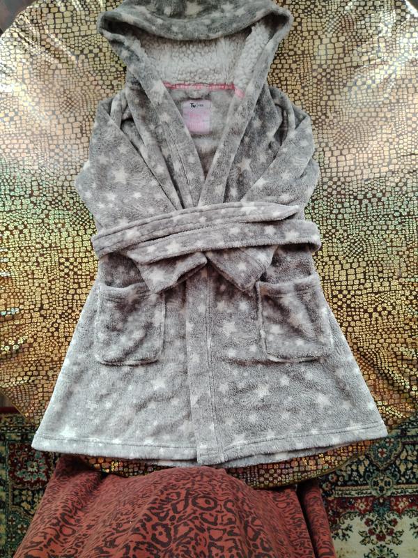 Теплий халат. Состояние близок к идеалу. Дефектов нет. Капюшон из искусственной овчины. Размер указатель 5-6 лет. 110-116 см.