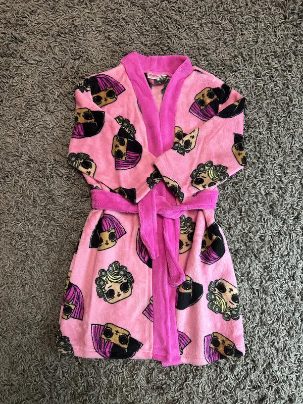 Супер яскравий, теплесенький халат на дівчинку з принтом ЛОЛ. Мягесенький, приємний на дотик. Халат на запах має пояс , який вшитий .
