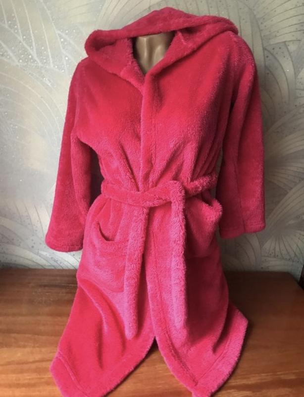 Плюшевый халат мягкий с капюшоном под пояс