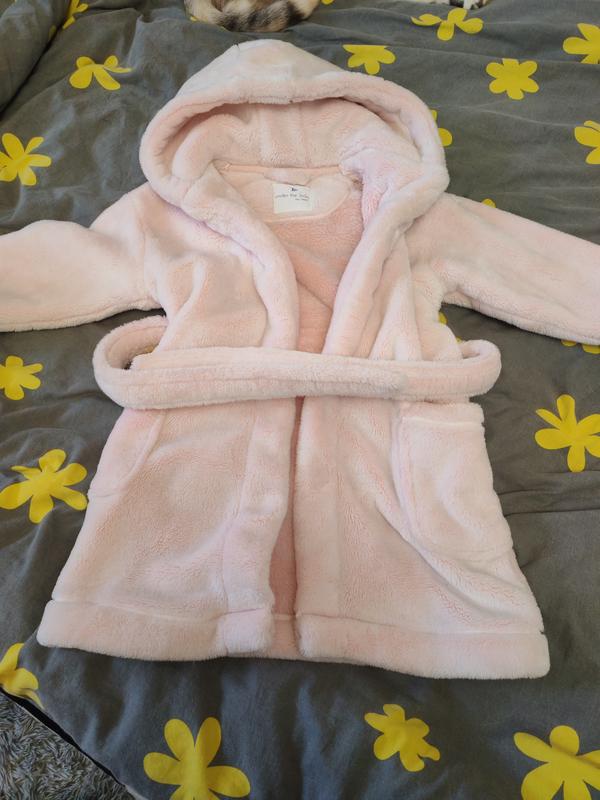 Халатик в идеальном состоянии 10 из 10. На рост 116.на возраст 5-6 лет но все зависит от вашего ребенка.. Длина 62см,рукав 35см,в плечах 43