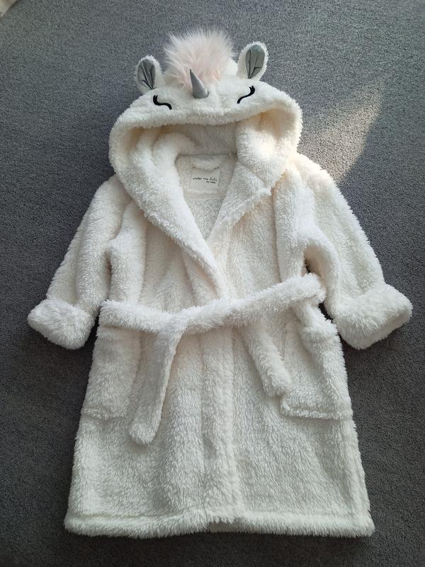 Очень милый,теплый и уютный халат для девочки на возраст 3-4,5 рюмки, состояние идеальное, ткань имеет микроблистки, которые на свету блестят