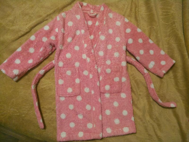 В хорошем состоянии махровый халат примерно на 110-116 см на 5-6 лет замеры сняты не в растянутом состояние длина от плеча 71 см, плечи 34 см подмышки 40 см пояс 34 см + тянется легко рукава 38 см от подмышки 28 см и ширина 12 см пройма 20 см,
