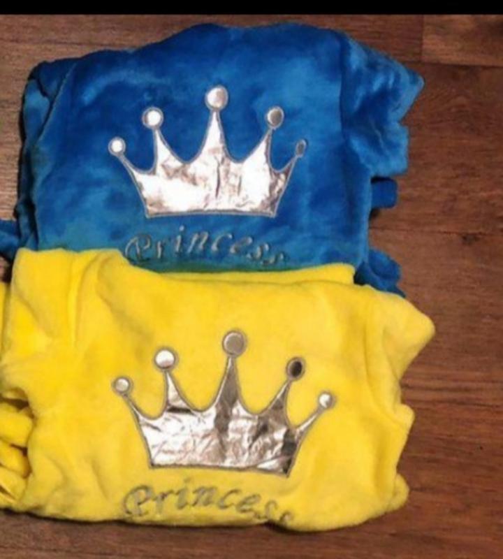 Новые детские плюшевые халатики для маленьких принцесс, остались в двух цветах голубой и желтый Голубой размер 86-92 Жёлтый размер 92-98