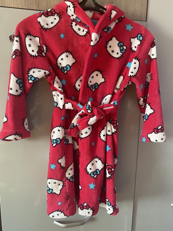 Халат в ідеальному стані Hello kitty, приблизно на 7-9 років. Довжина 70см, плечі 37 см, під мишками 40 см, рукав-40 см