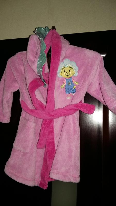 Продам очень классный халатик.На капюшоне рюша.Подойдет на 1-3 года